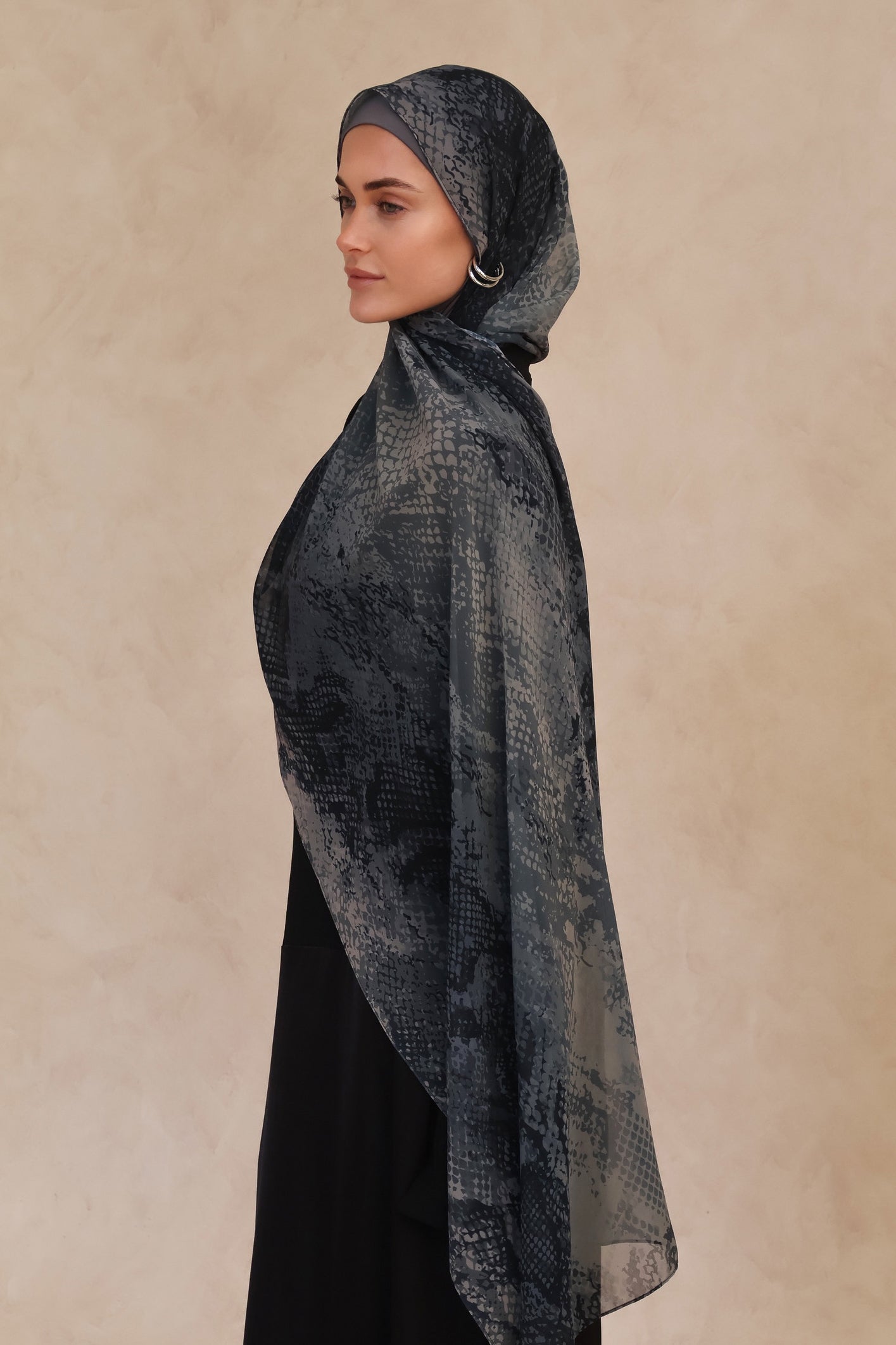 Cobra features a deep, dark snakeskin inspired print that adds a bold and modern touch to any look. Crafted from our chiffon fabric, this hijab offers a fluid drape and a soft, lightweight feel, perfect for both everyday wear and special occasions.