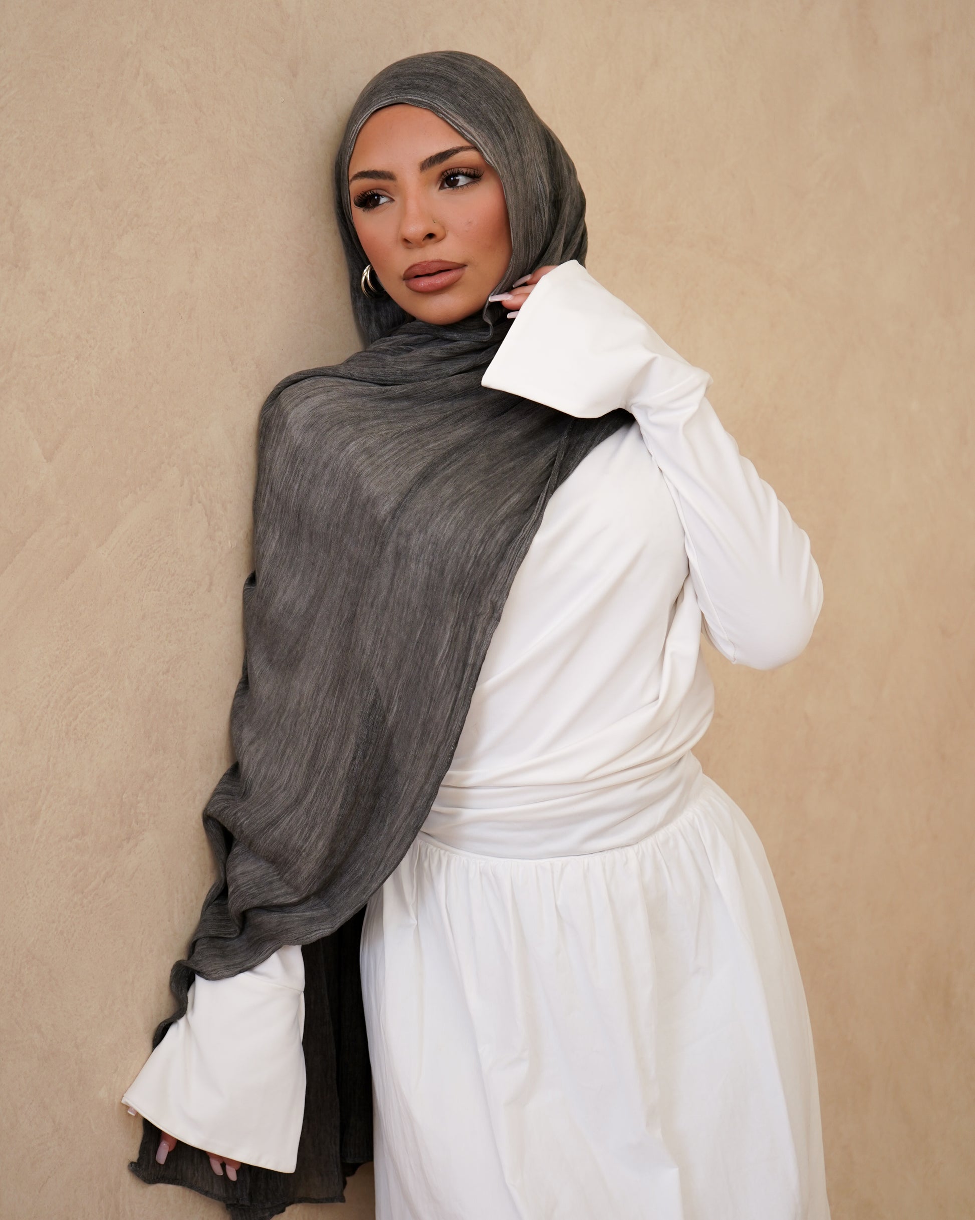 Our textured hijabs are designed with a soft, airy feel and a naturally flowing crinkle that adds effortless dimension to any outfit. This textured finish offers the perfect balance of comfort and style, draping beautifully while remaining easy to wear and simple to style throughout the day.